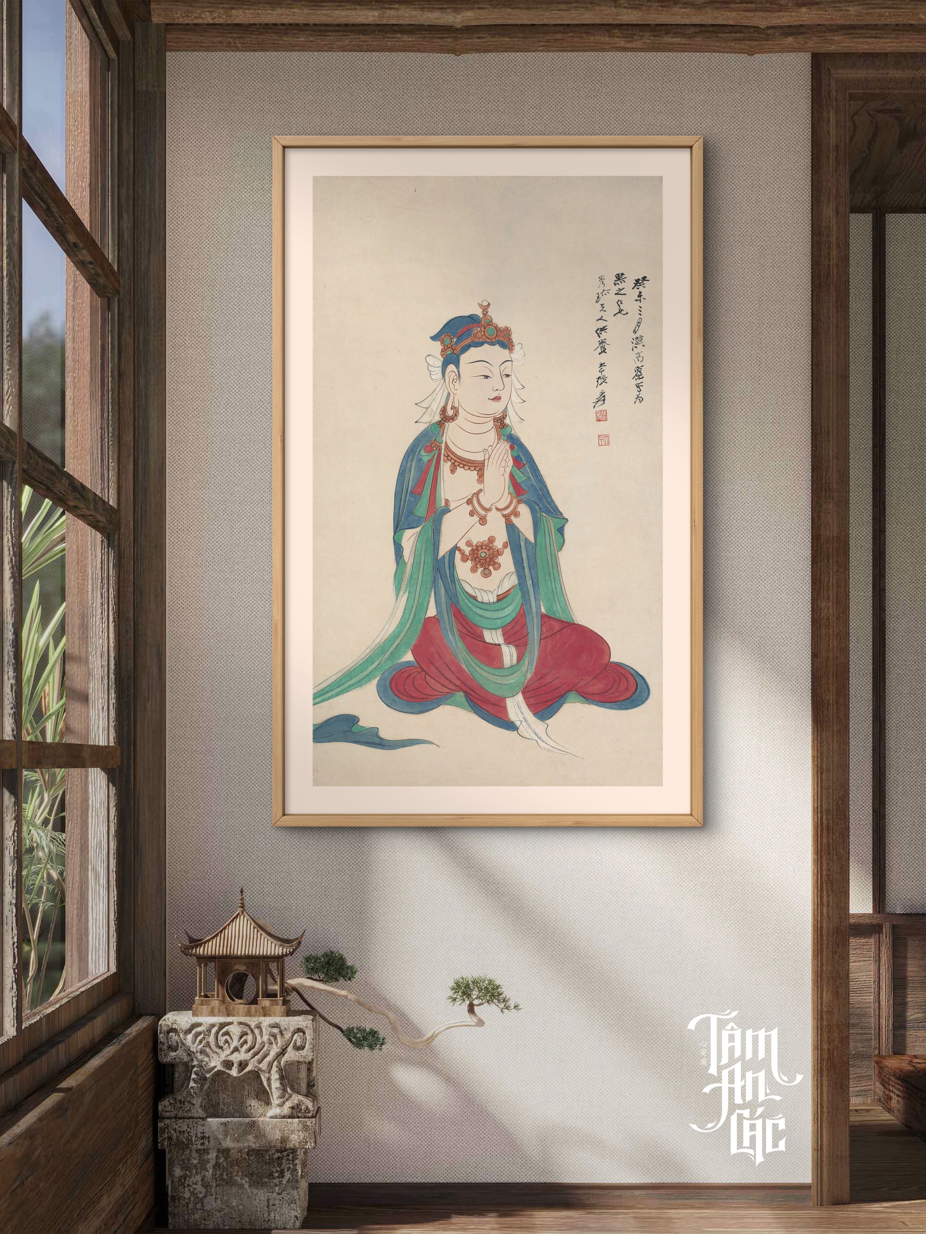 "Tọa Tượng Bồ Tát Quan Âm Đồ" mang đến không gian tĩnh lặng và sự an lạc sâu sắc cho tâm hồn.